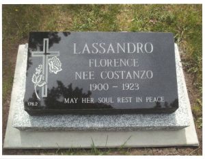 In the fall of 2011, Gerry Connelly, with hand drawn map in hand passed down by Joseph William Connelly to his son and grandson, attended at St. Joachim Cemetery, and located the graves of Emilio Picariello and Florence Lassandro, temporarily marking them for future erection of headstones. Although that original map has now been lost or destroyed, attached is a copy of the St. Joachim Cemetery plot chart now showing the location of the graves.