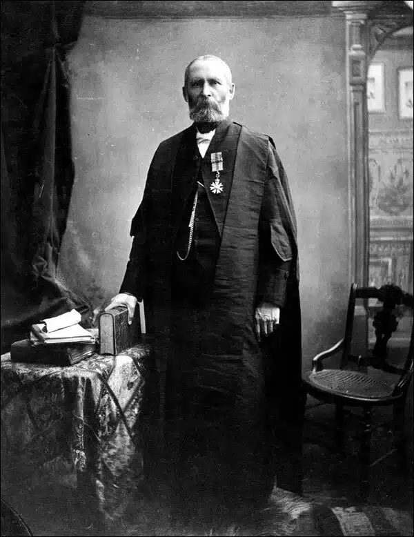 The restructuring divided the Territories into several judicial districts.  Calgary became the headquarters of the northern Alberta district with Charles Rouleau as the resident judge.  Born and educated in Lower Canada, he became a Stipendiary Magistrate in 1883 and was a Supreme Court Judge from 1887 until 1901.  Unlike Macleod, Rouleau emersed himself in the law.  He was regarded as the court’s most learned member and relied on his large collection of legal books to aid him in crafting his written decisions.  A majority of his decisions that went to the appellate court were upheld.[17]